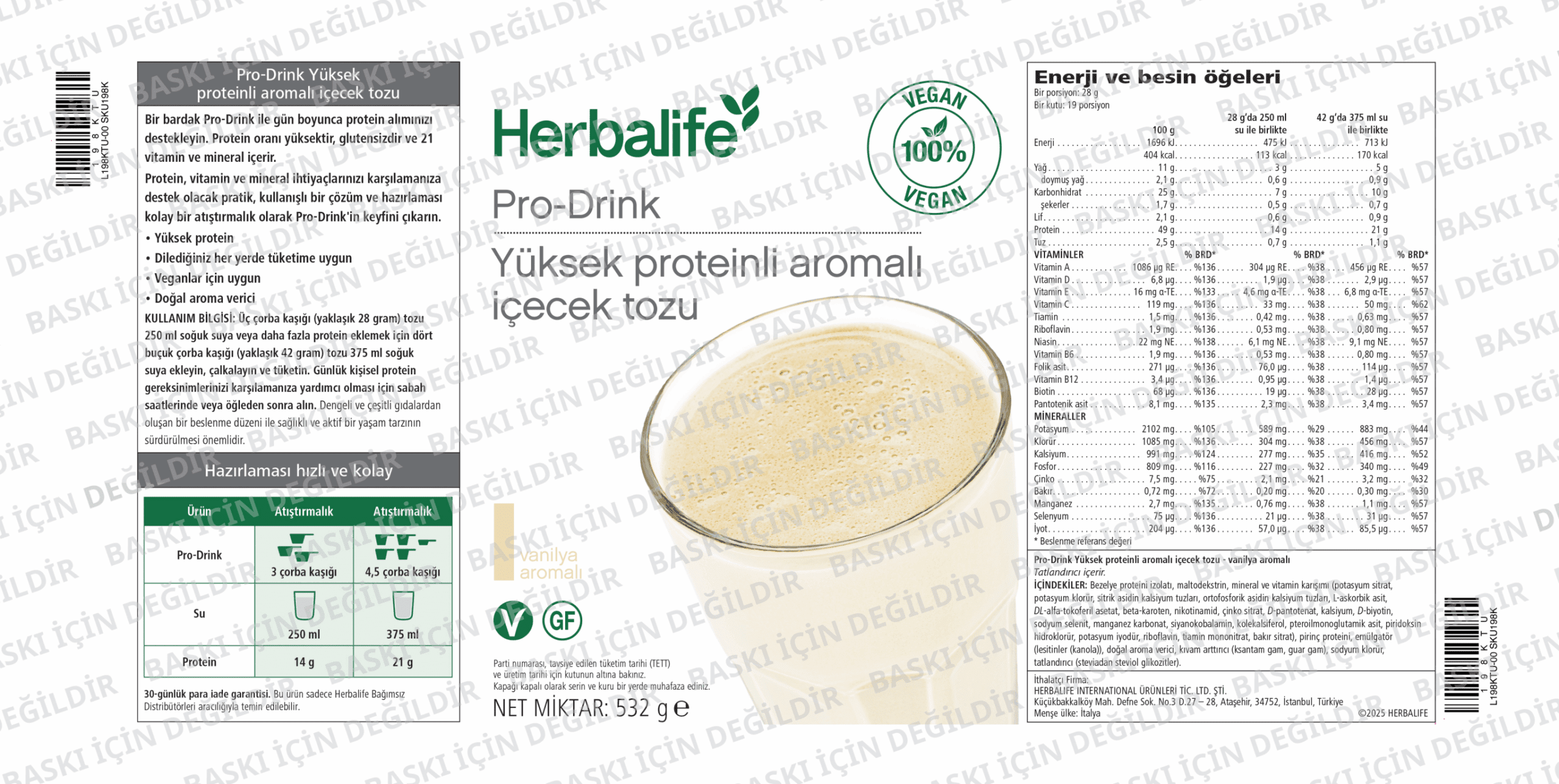 Herbalife Pro-Drink Yüksek Proteinli Vanilya Aromalı İçecek Tozu 532 g